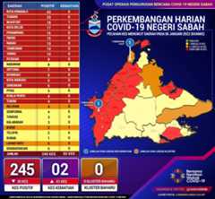 a. Negeri Sabah mencatatkan 245 kes pada hari ini yakni dengan sedikit penurunan sebanyak 35 kes berbanding semalam.