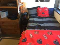 The sackroom provides the best student live-in accommodations of any station in the region. We are directly across the street from the University of Maryland’s engineering quad; home of the world famous fire protection engineering program. The entire campus is within easy walking distance from the firehouse. The sackroom has twelve two person, fully furnished, dormitory style rooms. Each pair of rooms is joined by a common bathroom. The rooms are carpeted, furnished, have free cable TV, free high-speed internet, and an advanced alerting system so the members never miss a call. Student line officers and ladder truck drivers are typically rewarded with a single room. At either end of the sackroom are brass fire poles to ensure a quick response to the apparatus fleet below. In between studying and riding calls, the live-ins find plenty of time to go out on the town or tailgate at the big game.