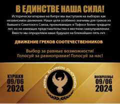 “In the 2024 municipal elections, for the first time in the history of Cyprus, Greek immigrants with Russian roots are participating as independent candidates from the Paphos Greek emigrant movement,” Liana Kesidou, a candidate for Paphos municipal councilor, said in a pre-election statement.