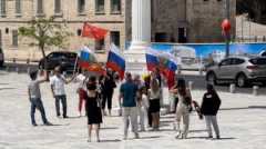 Tsakhidis, an election candidate and tourist guide, before the march in Limassol, has organized a meeting of Putin’s supporters in the central square of Paphos, where they shouted “Russia forward!” and “Victory will be ours!” They laid wreaths with Russian symbols at the monument in front of the city municipality. What kind of victory the Russian patriots were shouting about, is unknown.