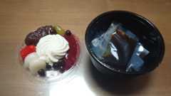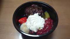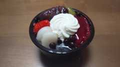 最後は、「苺のクリームあんみつ」。あんみつをベースとして、苺や苺のコンポート、キウイフルーツなどが乗った構成となっています。