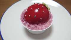 続いては、「まんまる苺ケーキ」。アラザンやチョコレートの飾り付けで苺の形を模したムースとスポンジ、苺とパンナコッタが重ねられた一品です。