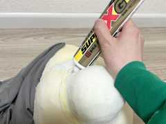 ハトの丸みを出すために、周りにウレタンを貼っていく。