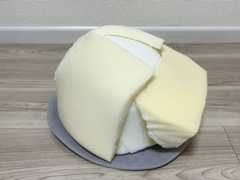 次は布を巻いていく。こんにゃくを作ろうと思って買った生地だけど、ツヤがハトっぽいのでこれを使おう!