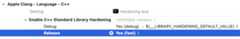 Note that the Debug configuration enablesdebug hardening mode by default. When enabling hardening, make sure not to accidentally override the stricterdebug mode with a less-strict production-capable mode in the Debug configuration. Turning on hardening might expose latent bugs and cause the application to terminate at runtime. We recommend testing your code thoroughly in a development environment.