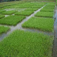 In an effort to attain a quantum jump in rice yields, rice breeding program has been focused on developing varieties with a few tillers, sturdy culm and heavy panicles – a plant architecture designated as the new-plant type. Both traditional varieties and introduced lines from International Rice Research Institute are used in the breeding program.