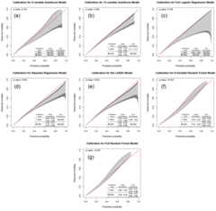 As illustrated inFigure 5, our nine-variable AutoScore model remained well calibrated, and all parts of the calibration belt showed a good fit under both 80% and 95% CIs. In comparison, other models displayed varying degrees of underestimation or overestimation. Two RF models performed the worst in the calibration test, followed by the stepwise regression and LASSO models. On the contrary, the AutoScore and logistic regression perform relatively well in terms of model calibration.