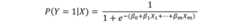 Whereβ0 is the intercept,β1. . .βm are the coefficients for each category,X1. . .Xm are the predictive variables, andY is the binary outcome.