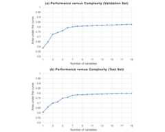 The number of variables (m) is a critical parameter for controlling model complexity in the scoring model. A model is considered parsimonious when it is both sparse (using the least number of variables possible) and possesses a good prediction accuracy. To cope with the trade-off between accuracy and complexity, different parameterm will be examined on the validation set and a parsimony plot (ie, model performance vs complexity) will be plotted, to which the user can refer for deciding the trade-off in deriving the risk scores. The best parameterm is determined whenm continues to increment and the prediction performance is no longer improving significantly, as shown in the parsimony plot. After confirming the parameterm, the final list of variables will be determined on the basis of the ranking obtained from Module 1. Modules 2 and 3 will be reimplemented to generate the initial scoring model.