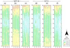 Figure 3. Results of small field EMI surveys on 30 September and 6 October 2016 forECa-L (a,d),ECa-H (b,e) andECa-38 kHz (c,f).