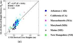 The spatial correspondence between LVIS and GLAS footprints was determined using the maximum distance from the center of a GLAS footprint to any LVIS footprint (within ∼45 m;Figure S5). The RMSEs between LVIS heights and five possible GLAS height metrics were obtained fromEquation (2):