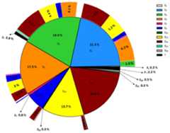 Figure 3. Frequency ofS-alleles andS-genotypes of the 183 apple advanced selections of the PFR’s breeding programme. Inner plot shows the percentage frequency distribution ofS-alleles from the total 366 alleles observed among the 183 genotypes tested. Outer plot represents the absolute frequency of eachS-genotype. All outer slices not showing a percentage value in the figure represent 0.3% respectively.