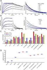 | koff (s–1) | SD | kon (µM–1 s–1) | SD | KD calc. (nM) | SD | KD equi. (nM) | SD | |