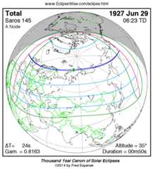| Greatest Eclipse | 1927 Jun 29 at 06:23:27.1 TD (06:23:02.7 UT1) | 2425060.766003 |
