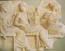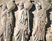 Apollo,fragment fryzu Partenonu przedstawiający Apolla (w środku), Posejdona i Artemidęfot. J. Makowski/Archiwum Ilustracji WN PWN SA © Wydawnictwo Naukowe PWN