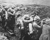 między ententą (główne państwa: Wielka Brytania, Francja, Rosja, potem Serbia, Japonia i Włochy) a państwami centralnymi (Austro-Węgry, Niemcy, poparte przez Turcję i Bułgarię). Wynikła ze splotu antagonizmów między mocarstwami, rywalizacji o hegemonię w Europie, wpływy na Bałkanach, podział świata kolonialnego i rynków zbytu, a także dążenia do rewizji granic, ustalonych w rezultacie konfliktów europejskich XIX w. Pretekstem do wybuchu wojny stało się zamordowanie w Sarajewie 28 VI 1914 następcy tronu austro-węgierskiego arcyksięcia Franciszka Ferdynanda. 28 VII 1914 Austro-Węgry wypowiedziały wojnę Serbii, później uczyniły to Niemcy wobec Rosji i Francji; 4 VIII 1914 wojska niemieckie wkroczyły do neutralnej Belgii, by następnie zaatakować Francję (plan Schlieffena); tego samego dnia Wielka Brytania wypowiedziała wojnę Niemcom, a 6 VIII Austro-Węgry — Rosji. Ofensywa niemiecka została zatrzymana przez Francuzów nad Marną, co zapoczątkowało trwającą na tym froncie do 1918 wojnę pozycyjną — mimo stosowania nowych rodzajów broni: gazów bojowych (22 IV 1915 użyte po raz pierwszy przez Niemców pod Ypres), czołgów (1916 użyte w walce nad Sommą przez wojska brytyjskie) oraz zaciętych walk (Verdun 1916); brytyjskie i francuskie próby przełamania obrony niemieckiej nie przyniosły powodzenia, a ogromne straty spowodowały wybuch powszechnego niezadowolenia w armii francuskiej, opanowany drakońskimi środkami przez generała Ph. Petaina. 6 IV 1917 Stany Zjednoczone wypowiedziały wojnę Niemcom, a 8 I 1918 prezydent Stanów Zjednoczonych Th.W. Wilson wystąpił z orędziem do Kongresu, formułującym podstawowe warunki przyszłego pokoju (Wilsona czternaście punktów); stronę państw sprzymierzonych wzmocniły wojska amerykańskie i latem armie ententy przeszły do działań zaczepnych, odrzucając Niemców z północnej Francji i zachodniej Belgii; 11 XI 1918 Niemcy podpisały pod Compiègne zawieszenie broni z państwami sprzymierzonymi.Na froncie wschodnim wojska rosyjskie 1914 poniosły porażki w Prusach Wschodnich w bitwach pod Stębarkiem (niemiecki Tannenberg), a ich kontrofensywę zatrzymały wojska niemieckie i austro-węgierskie w bitwach pod Łodzią, Krakowem i Limanową. W 1915 Niemcy zwyciężyli Rosjan nad jeziorami mazurskimi, a latem i jesienią wojska niemieckie i austro-węgierskie zajęły Królestwo Polskie, część tzw. Ziem Zabranych i krajów bałtyckich; w czasie odwrotu Rosjanie przeprowadzili masową ewakuację ludności, maszyn i produktów rolnych, powiększając zniszczenia wojenne ziem polskich; walki na Podkarpaciu nie przyniosły w tym okresie sukcesu strategicznego żadnej ze stron. W 1916 ofensywa rosyjska na Wołyniu (pod wodzą generała A. Brusiłowa), podobnie jak natarcia na Białorusi i w Kurlandii nie zmieniły w sposób istotny sytuacji na froncie, nastąpiła jego stabilizacja. W VIII 1915 do wojny po stronie ententy przystąpiła Rumunia, ale jej wojska zostały szybko zmuszone do odwrotu. Rozstrzygnięcie na froncie wschodnim nastąpiło dopiero 1917; Rosja, osłabiona m.in. przez rewolucję lutową i październikową, poniosła klęskę (m.in. utrata Rygi) i podpisała 5 oraz 15 XI w Brześciu Litewskim zawieszenie broni, kończące działania wojenne na froncie wschodnim. Jednocześnie, wraz z rozkładem armii rosyjskiej, z jej nierosyjskich żołnierzy i z jeńców powstały formacje narodowe, m.in. Korpusy Polskie w Rosji. 9 II 1918 Niemcy i Austro-Węgry podpisały w Brześciu Litewskim traktat pokojowy z Ukraińską Radą Centralną, na podstawie którego Chełmszczyznę przyłączono do Ukrainy; wojska niemieckie i austro-węgierskie podjęły ofensywę i zajęły kraje bałtyckie, Białoruś i część Ukrainy; 3 III sowiecka Rosja podpisała w Brześciu Litewskim traktat pokojowy z państwami centralnymi (brzeski traktat pokojowy), natomiast Rumunia 5 III zawieszenie broni a 7 V zawarła pokój. Na froncie bałkańskim ofensywa wojsk austro-węgierskich na Serbię 1914 zakończyła się porażką, 1915 Serbia przegrała bitwę na Kosowym Polu, państwa centralne 1916 opanowały Czarnogórę i część Albanii.