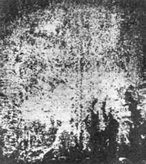 Рис. 2. Результаты обработки панорамы.Итак, принимаем, также как и Дон Митчелл, в качестве весьма правдоподобной посылки квазигоризонтальное положение камеры. В этом случае вертикальный угол зрения камеры составит около 4.7° (79 строк), а его значащая часть (без переходного процесса АРЧ) - около 3.5° (59 строк), и поэтому, в силу малости этой величины, попадание в угол зрения камеры линии истинного горизонта весьма маловероятно. Учитывая, что высота камеры над поверхностью может составлять примерно 40-60 см, и сделав простейшие построения, можно представить себе геометрические условия работы камеры. После компьютерной обработки, включающей устранение периодических и импульсных помех, контрастирование, исключение из видеосигнала краевых эффектов и телеметрической вставки, а также увеличение масштаба по вертикали примерно на 37% для уменьшения геометрических искажений, получается версия панорамы с СА Марс-3, представленная на рис. 2. Это бугристая комковатая поверхность, предположительно с равномерным по полю зрения распределением малоконтрастных элементов рельефа, подобная типу поверхности, встречающемуся, как мы сейчас знаем, и на Луне, и на Марсе. Если статистику рельефа принять одинаковой для всего поля зрения, то нижняя часть панорамы, имеющая более крупные детали, должна располагаться ближе к камере на расстоянии примерно 1 м, а верхняя - дальше, примерно на расстоянии 2-2.5 м. В горизонтальной плоскости изображение захватывает угол в 28.5° и всего несколько квадратных метров поверхности вблизи станции.