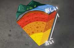 時間が経つにつれて、地層の上にまた新しく地層が形成され、それらが積み重なっていきます。こうして、本のページが一枚一枚重なり合うように地層は厚みを増していき、それぞれの層が地球の過去の物語を私たちに教えてくれています。