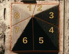 通常、ピラミッドは4面体の構造であると考えられていますが、実は各面は中央でわずかに折れ曲がっており、光の当たり方によって、“凹面”、つまりへこんだ面が浮かび上がるという、特殊な8つの面の構造になっていることが知られています。
