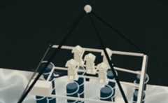 さらに、それぞれの柱の下部は、2つの巨大な立方体構造物へと接続されています。