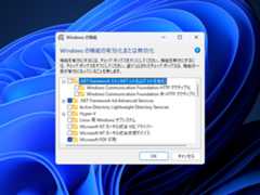 「.NET Framework 3.5」はWindowsアプリの開発フレームワークで、実行に必要なランタイムはOSコンポーネントとしてWindows 11に含まれている。ただし、既定では無効化されており、必要に応じて(on demand)ダウンロード・インストールする仕組みになっており、ランタイムをOSに追加するには[Windows の機能](Windows の機能の有効化または無効化)ダイアログでユーザー自身が有効化する必要があった(オプション提供)。