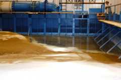 The UWRL utilizes gravity flow and pumped flow to bring water into the facility through galvanized pipes. The main facility has a gravity flow capacity of over 100,000 gallons per minute, and the new facility has a pumped capacity of over 50,000 gallons per minute. These capacities allow for scale model testing on the likely performance of a particular design of a dam or spillway without incurring the full expense of the prototype. The current model at the new Hydraulics laboratory is the Success Dam Emergency Spillway (California), which is 1/20th the size of the actual dam.
