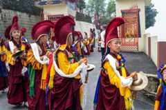 The Serpentine Festive Procession Led by Monks Followed in Close Succession by Throngs of Young Devotees Leaves the Monastery Gates for its Customary Round to Downtown Gangtok and Back