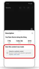 以下は説明欄の例。「How this content was made(このコンテンツはどのように作られたか)」という項目が追加され、「Sound or visuals were altered or generated digitally(音または映像は改変・生成されたものです)」という注意書きが表示されます。