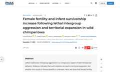 Female fertility and infant survivorship increase following lethal intergroup aggression and territorial expansion in wild chimpanzees | PNAS