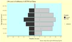 flup+ scale_fill_grey(guide= guide_legend(order=1))+ theme(text= element_text(size=18,family="serif"))+ theme(panel.background= element_rect(fill="#ccffff"))+ theme(plot.background= element_rect(fill="#ffffcc"))+ theme(legend.background= element_blank())+ labs(x="Age group (years)",y="Number of cases",fill="Gender",title="136 cases of influenza A H7N9 in China",caption="Source: https://doi.org/10.5061/dryad.2g43n" )#> Scale for fill is already present.#> Adding another scale for fill, which will replace the existing scale.