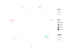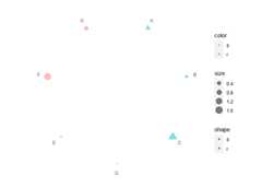 # Set aes mappingset.seed(123L)data1<-data.frame(x=LETTERS[1:7],shape= c("r","r","r","b","b","b","b"),color= c("r","r","r","b","b","b","b"),size= abs(rnorm(7)))# Check https://ggplot2.tidyverse.org/reference/geom_point.html# for how to use both stroke and colorp3<- polar_init(data1,x=x, aes(size=size,color=color,shape=shape),alpha=0.5)p3