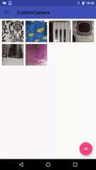 6. customcamera: This is a MVP pattern, custom camera app with flash support. The home screen is a gridview which shows clicked photos. Dagger 2 implementation added.