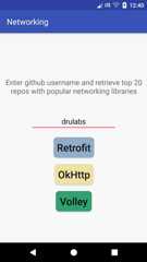 9. networking: Networking with popular networking libraries like retrofit and volley. Also recycler view with kotlin.