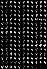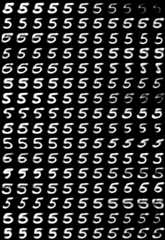 python capsulenet.py -t --digit 5 -w result/trained_model.h5For each digit, theith row corresponds to theith dimension of the capsule, and columns from left toright correspond to adding[-0.25, -0.2, -0.15, -0.1, -0.05, 0, 0.05, 0.1, 0.15, 0.2, 0.25] tothe value of one dimension of the capsule.