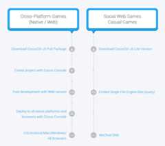 Cross platforms developers can use Cocos Console to create projects, boost their development with web version engine and deploy games onto all native platforms and all browsers with Cocos Console.