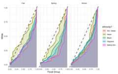 auc(benchmarks,math~season+frl,ref_group=~Fall+`Non-FRL`)#> # A tibble: 5 x 5#> # Groups: frl, season [1]#> frl_ref season_ref frl_foc season_foc auc#> <chr> <chr> <chr> <chr> <dbl>#> 1 Non-FRL Fall Non-FRL Winter 0.6400361#> 2 Non-FRL Fall FRL Spring 0.6501417#> 3 Non-FRL Fall FRL Winter 0.4685164#> 4 Non-FRL Fall Non-FRL Spring 0.7897519#> 5 Non-FRL Fall FRL Fall 0.3090356
