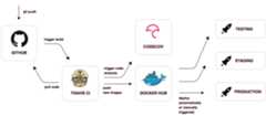 In thisconfiguration, Travis CI builds tagged images for each successful git push. So, there are alwayslatest image for each microservice onDocker Hub and older images, tagged with git commit hash. It's easy to deploy any of them and quickly rollback, if needed.