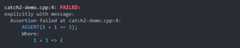 #include<libassert/assert-catch2.hpp>TEST_CASE("1 + 1 is 2") {ASSERT(1 +1 ==3);}