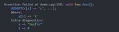 Values involved in assert expressions are displayed. Redundant diagnostics like2 => 2 are avoided.