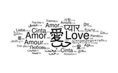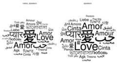 library(dplyr,quietly=TRUE,warn.conflicts=FALSE)library(tidyr,quietly=TRUE)set.seed(42)ggplot(love_words_small %>% gather(key="type",value="speakers",-lang,-word) %>% arrange(desc(speakers)), aes(label=word,size=speakers))+ geom_text_wordcloud_area()+ scale_size_area(max_size=40)+ theme_minimal()+ facet_wrap(~type)