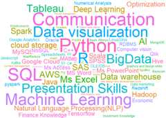 The DSjobtraker package compiles data from 1172 job advertisements indata science and statistics, making it an invaluable tool for learningkey skills required in these areas. Here is a word cloud of 97 requestedskills mentioned in the job advertisements. It provides insights intothe most sought-after skills in the field.