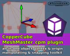 This CopperCube 3d engine cpm plugin extension provides a rich toolset for hotkey-based 3d mesh object snapping & transformation, vertex geometry manipulation plus object origin (pivot) adjustment.