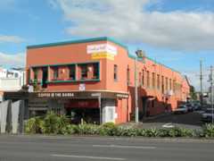 This is a rendered brick, two storey commercial building. It is on a corner site however, the building only really addresses Stanley Street, with the exception of some signage on the top of the parapet walls on the upper level. The top of the parapet is decorated with cornicing and corbelling which arc down to the lower height of the parapet part way along the sidewall. There are six casement windows on the upper level, which are framed by three linked square protruding frames. The casement windows in the sidewall do not have a strong rhythm like the front ones and do not have the framing, only a simple sill. An awning shades the front of the lower level and extends back slightly around the corner. The lower level walls are veneered in small white and grey tiles with several large glass door openings and a window. The tiling continues around the corner to in line with the edge of the awning. A window of the same dimensions as the front one is within this tile veneered wall section, with a security screen over it.