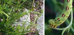 This insect has a wide host range. Some of the plants utilized as host plants in the Midwest include apple, evening primrose (Oenothera spp.), four-o’clocks (the common annualMirabilis jalapa and wild four-o’clock,M. nyctaginea), fuchsia,Gaura lindheimeri,grape, pentas, purslane, tomato, and willow-weed (Epilobium). Other native plants are used elsewhere, such as sand verbena (Abronia umbellate), wishbone plant (Mirabilis californica and other species ofMirabilis), and brown-eyed evening primrose (Camissonia claviformis ssp.piersonii) in the desert Southwest and toothed spurge (Euphorbia dentate) in Texas.