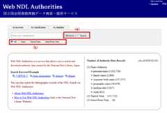 Figure 1: Web NDL Authorities Front Page (Keyword Search) Screen