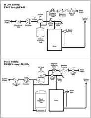 Illustration: an example guide showing the location of two types of expansion tanks, excerpted from Amtrol's Extrol instructions from 2014, cited in detail below.
