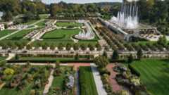 A 77-room French chateau–style mansion with formal gardens, fountains, vintage cars, and extensive grounds.