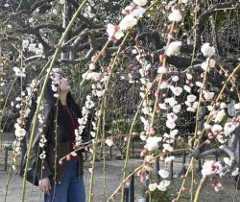 White and Pink Plum Blossoms Begin to Bloom at Yuki Shrine in Jap...