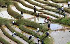 Rice Planting Begins in Quake-Hit Terraced Fields in Wajima; Volunteers Enjoy Working in Restored Paddies