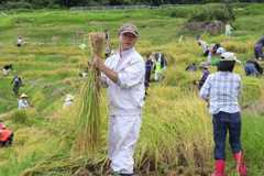 Volunteers Harvest Rice from Terraced Paddies in Wajima; Crop Was Successful Despite Damage from Earthquake, Torrential Rains